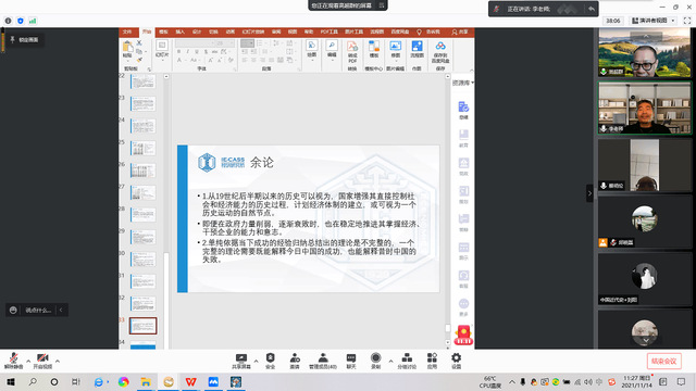 2021年11月14日上午8点30分至11点30分,中国社会科学院经济研究所研究员、《中国经济史研究》编辑部主任高超群于腾讯会议为万象城awcsport官网师生作了以“试析近代企业产权保护制度——以大生纱厂为例”为主题的精彩演讲。本次演讲由万象城awcsport官网李柏林教授主持。万象城awcsport官网蔡明伦教授、张泰山教授和邱晓磊博士、历史学专业本科生及研究生共计数十人一同在线聆听此次演讲。