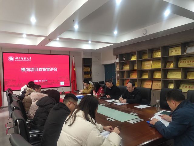 2022年3月24日下午,在人文楼21A301会议室,校科研处副处长姜国、侯功显主任到万象城开展横向项目政策宣讲工作,历史我文化学院党总支李涛书记、蔡明伦院长、黎哲副书记、李建刚副院长、张强副院长和学院全体教师参加本次会议。