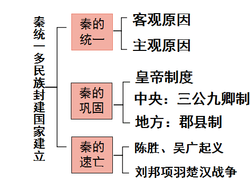 对比刘邦和项羽的性格特点、处事用人方式,总结“得民心者的天下,失民心者失天下”的道理。这个道理同样适用于秦朝的灭亡,我们一起来回顾一下秦朝的建立到灭亡的过程:(3min)