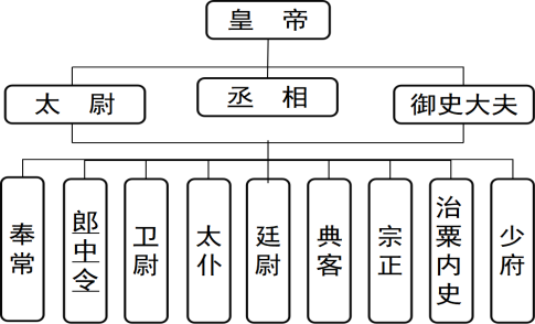 根据图表可以看出,皇帝下设三公九卿制度