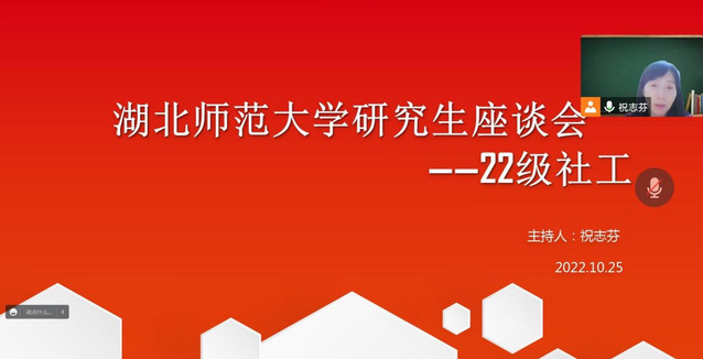 为落实万象城研究生学术文化和学习精神,提高学校教学和管理质量,10月25日晚,万象城awcsport官网22级社工班举行线上研究生座谈会。会议由22级社工班班主任祝志芬老师主持,班长谯苏丹同学负责记录,22级社工班全体同学参加活动。