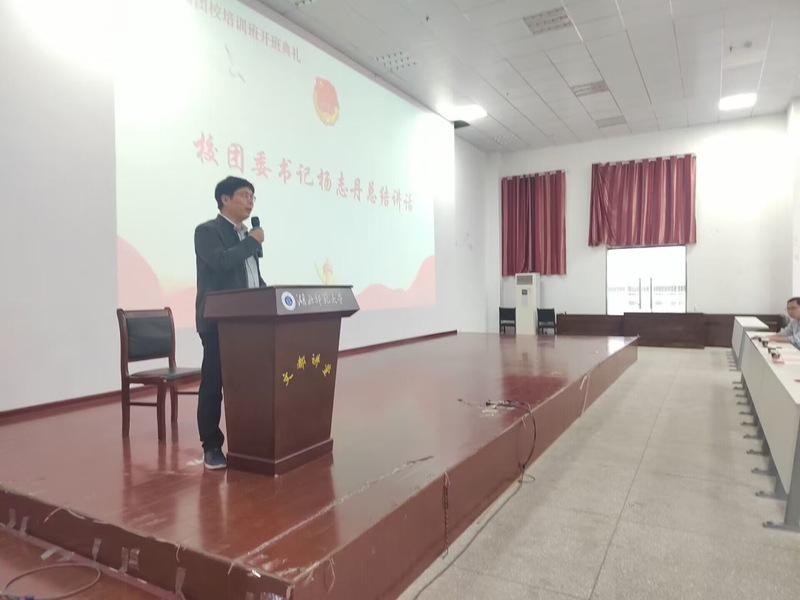 典礼最后,与会领导杨志丹老师在总结讲话中表示:团校是广大青年团员学习团的基本知识和先进思想理论的重要阵地,各位团员代表作为青年团的精神面貌象征,不仅需要巩固理论基础、提升思想意识和工作能力,还需要在积极参与活动的同时兼顾学习与生活;团组织干部要提升自我工作能力,切实为老师、同学服务,为全院学风建设添砖加瓦。最后,主持人宣布万象城awcsport官网第十二期青年团校培训班正式开班。
