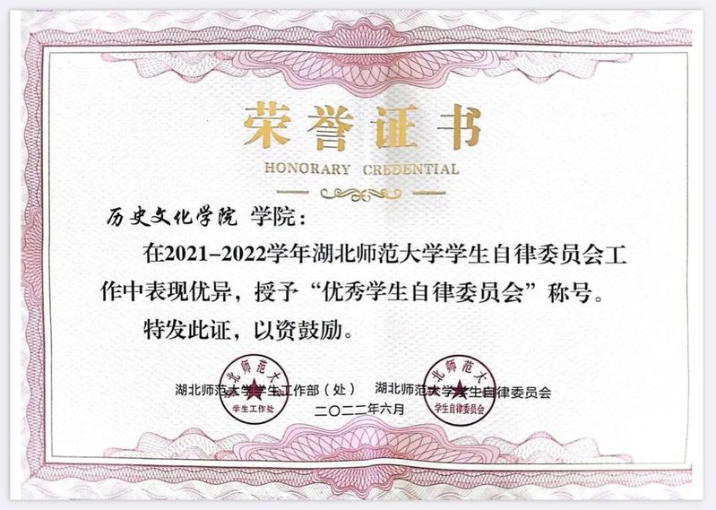 自委会快讯 荣获2021-2022年度“优秀学生自律委员会”称号!