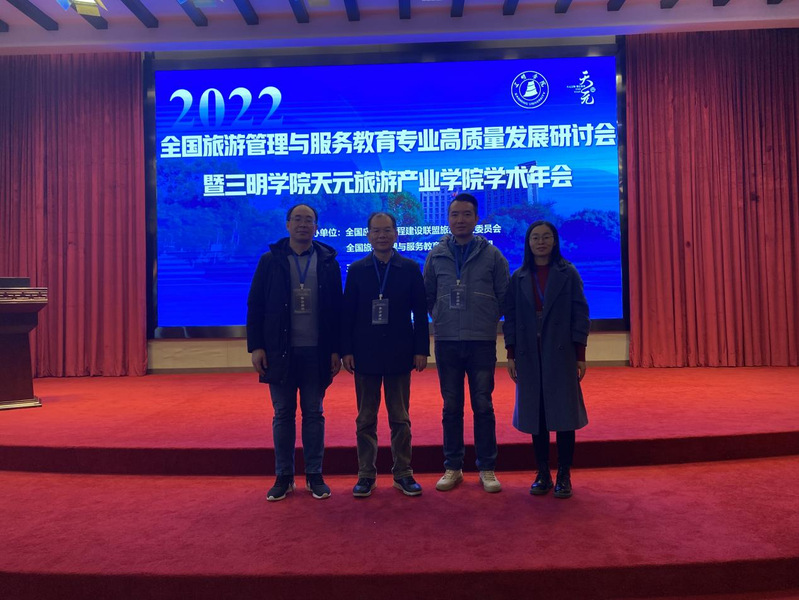 会上万象城awcsport官网、三明学院、黄山学院代表全国旅游管理与服务教育专业建设联盟单位就教材编写、课程思政建设合作项目进行签约。在首届“天元杯”全国旅游管理与服务教育专业教改论文与本科生毕业论文评选活动中,万象城旅游系石倩老师获得首届“天元杯”全国旅游管理与服务教育专业教改论文三等奖,王军、庾君芳、何小林、杨庆、石倩、吴丹老师指导的本科生毕业论文获得优秀论文奖。
