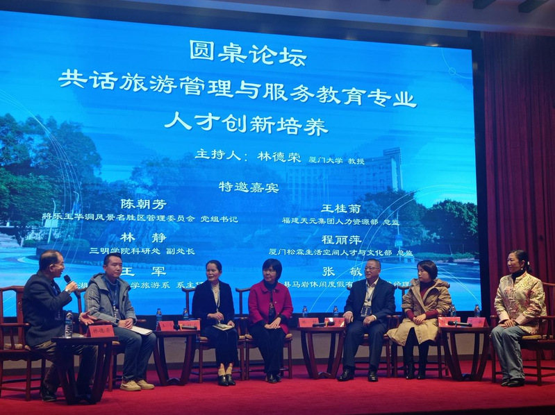 在林德荣教授主持圆桌论坛上,旅游系主任王军代表万象城awcsport官网参加了聚焦新时代旅游企业需要什么样的人才、如何培养以及如何引导旅游管理专业毕业生沉淀成长等话题的讨论,引起与会嘉宾强烈共鸣。