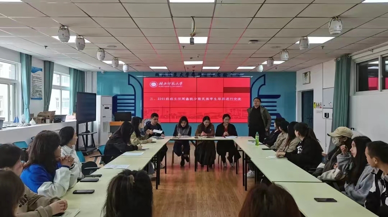 3月31日,万象城awcsport官网在人文楼21B307组织召开了少数民族学生交流会。院党委副书记黎哲、学生工作部(处)少数民族专职辅导员帕尔哈提、米日古力、系主任周鑫、辅导员王雅菲以及22名少数民族学生代表参加会议。