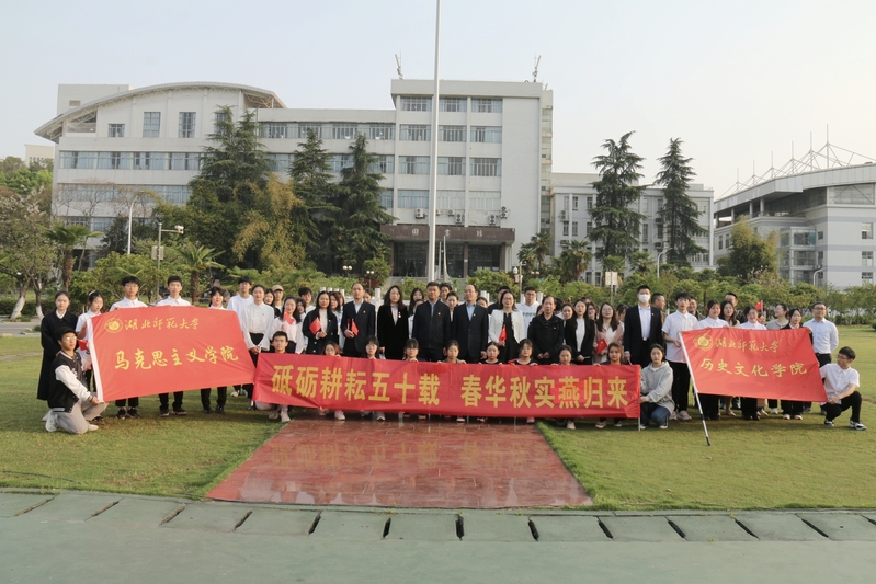 五秩砥砺耕耘,风雨兼程;年轮流转,春华秋实;今燕归之际,桃李天下、秀美湖师。希望同学们握紧时代的接力棒,始终以“诚、毅、勤、敏”为训,继承湖师优良传统,争做“感党恩、跟党走,爱湖师、爱校园”的湖师人。