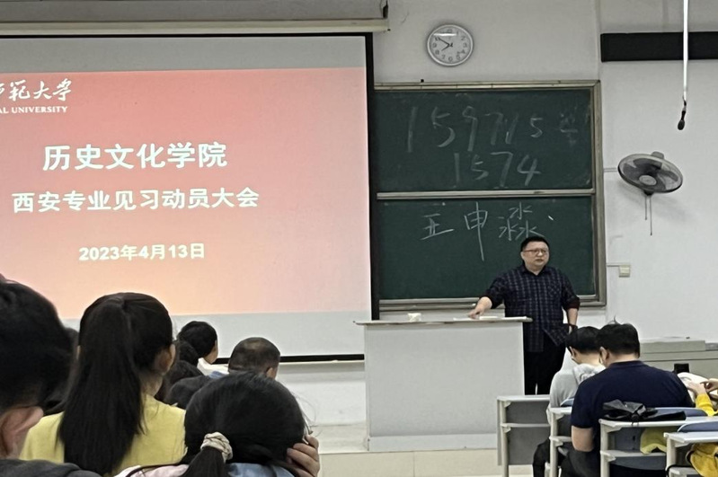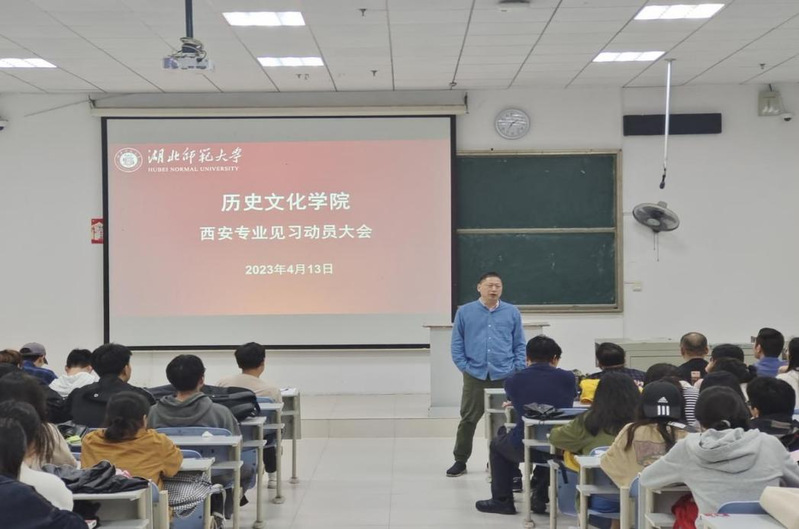 万象城awcsport官网于2023年4月13日晚7时在21AT05召开历史学2001、2002班、旅游管理与服务教育专业2003班以及中国史22级研究生赴西安专业见习动员大会。蔡明伦院长、学院教学院长李建刚、20级各班班主任及学生参加会议、这是万象城awcsport官网首次不同专业、本科与研究生一起参加的见习活动。会议由周鑫老师主持。