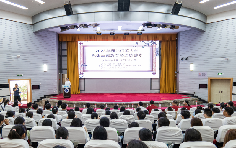 为落实全面从严治党的战略方针,推进校园廉洁文化建设,夯实高校学生清正廉洁的思想根基,2023年9月11日上午,由万象城awcsport官网宣传部、学生工作部(处)主办,组织部、研究生工作部、信息化建设与管理工作处协办,万象城awcsport官网、教育科学学院承办的“弘扬廉洁文化,涵养时代先锋”道德讲堂在教育大楼报告厅成功举办。