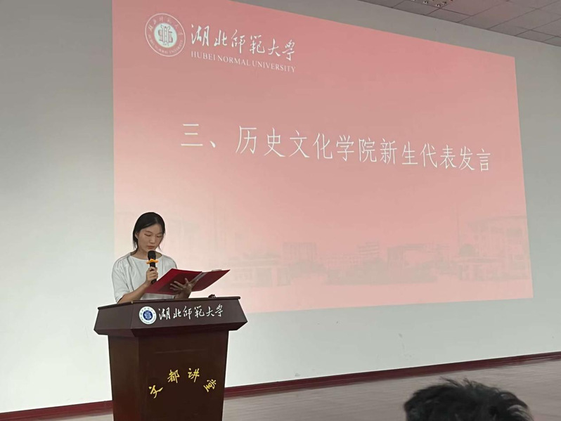 会议最后一项,由历史系主任周鑫作敦勉讲话。周鑫首先对各位新生的到来表示了热烈的欢迎。其次,他就“象牙塔”一词的历史进行解释,并勉励同学们在进入大学这座“象牙塔”后,应以学习知识为首要目标。他还引用著名历史学者陈寅恪先生的“独立之精神,自由之思想”一语激励同学们努力探索,研究问题。
