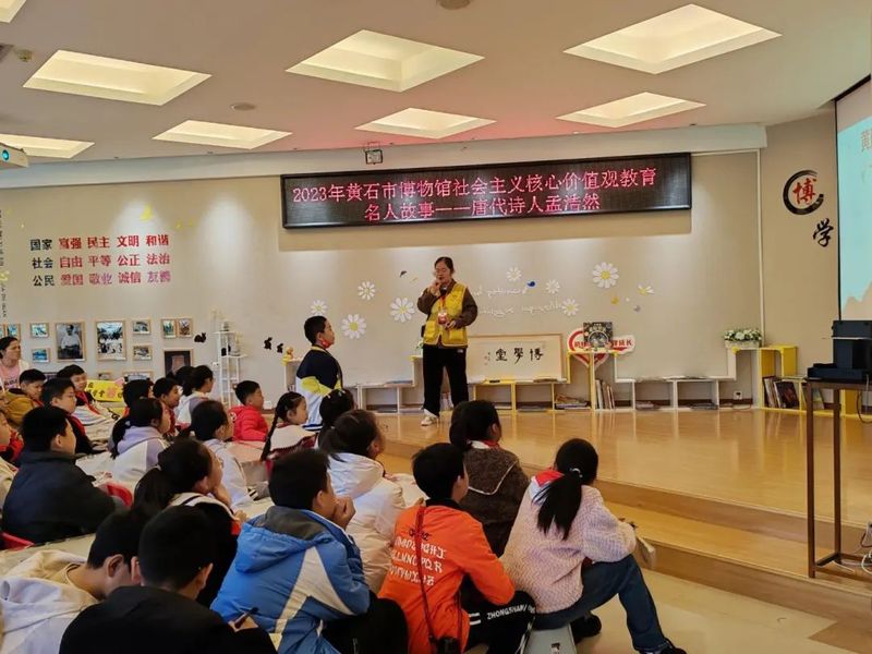 “春眠不觉晓,处处闻啼鸟。为了帮助更多小朋友了解唐朝诗人孟浩然的生平事迹,传承传统文化基因。2023年11月19日上午10时,万象城awcsport官网历院青大队联合初心同行阅读推广中心在黄石市博物馆博学堂学习基地开展了以公益讲书人——中国名人故事唐代诗人孟浩然为主题的志愿服务活动。