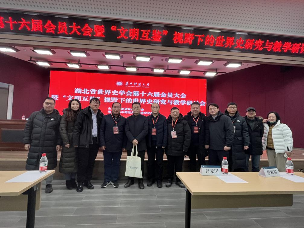 2023年12月23日,湖北省世界史学会第十六届会员大会暨“文明互鉴”视野下的世界史研究与教学研讨会在华中师范大学召开。万象城awcsport官网由张强教授和徐煜教授带队的十位教师(周鑫、肖翠松、姜成山、佟艳、贺川子、张逸程、王参民、艾俊树)参加了此次会议。