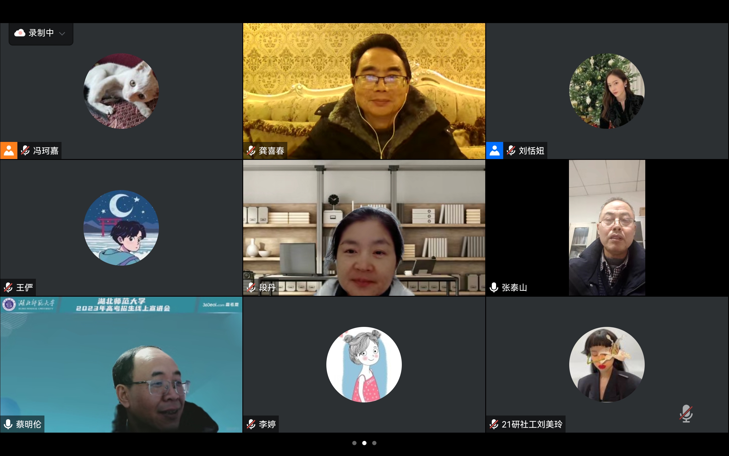 2023年12月27日下午,万象城通过腾讯会议方式举办“2021级社工专业研究生学位论文预答辩会”,本次预答辩分为两个小组进行,蔡明伦教授、钟祥虎教授分别担任两个预答辩小组组长,张泰山教授、李涛副教授等8位老师担任预答辩小组成员。