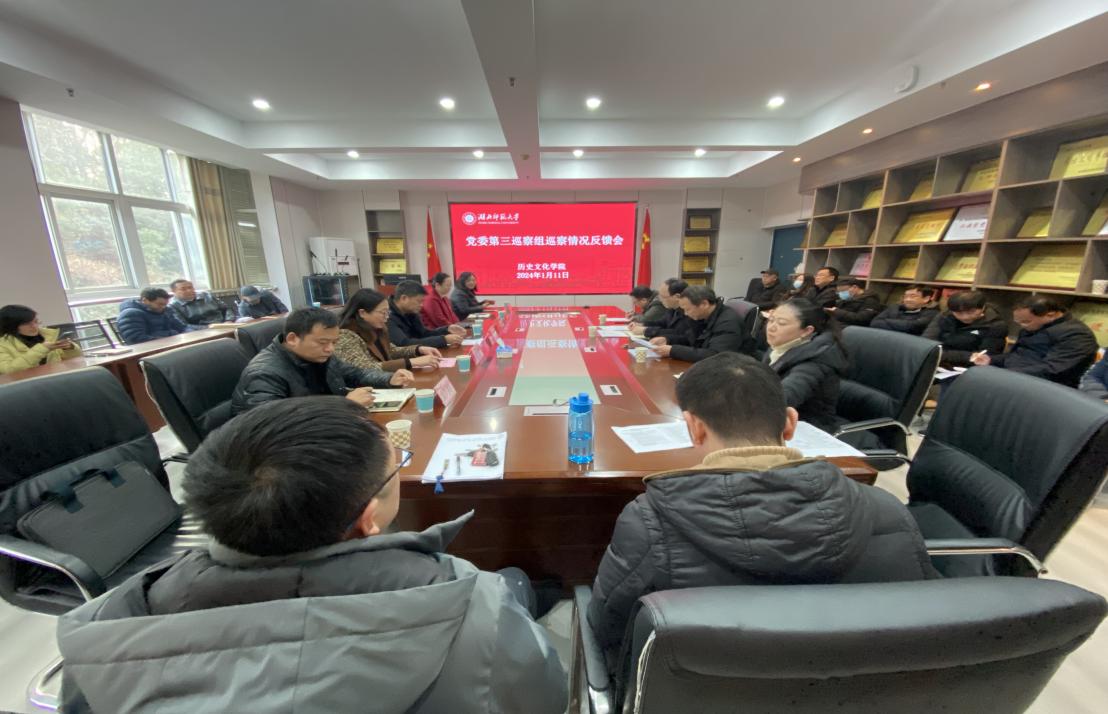 2024年1月11日,党委第三巡查组在万象城awcsport官网召开了巡察情况反馈会。党委副书记马列军、党委第三巡察组组长、副组长、巡察组其他成员及万象城awcsport官网全体教职工参加此次会议。会议由万象城awcsport官网党委书记李涛主持。