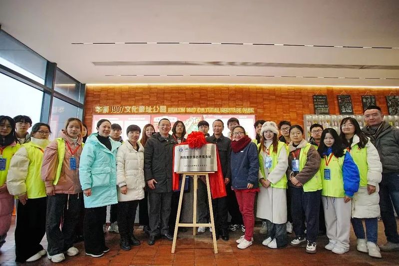 3月5日中午12:30燕归巢旅游志愿服务团队(以下简称“燕归巢”)在黄石市华新1907文化公园进行工作站揭牌仪式,本次活动由燕归巢队长周旋主持。参加本次会议成员有万象城awcsport官网校团委书记刘晓光老师,万象城awcsport官网党委书记李涛老师,万象城awcsport官网党委副书记黎哲老师,万象城awcsport官网院长助理王军老师,华新1907文化公园总经理张慧杰经理,运营经理黄菁经理以及燕归巢旅游志愿服务团队的志愿者。