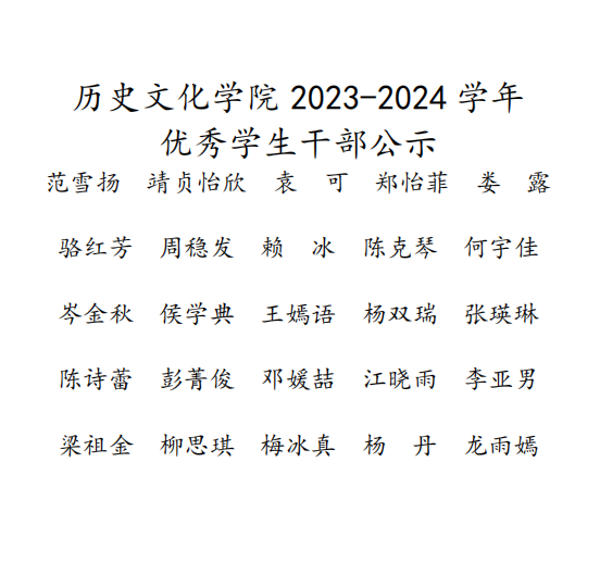 万象城awcsport官网2023-2024学年优秀学生干部公示