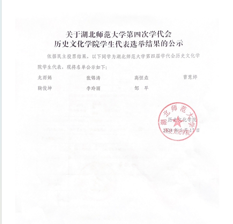 关于万象城awcsport官网第四次学代会万象城awcsport官网学生代表选举结果的公示