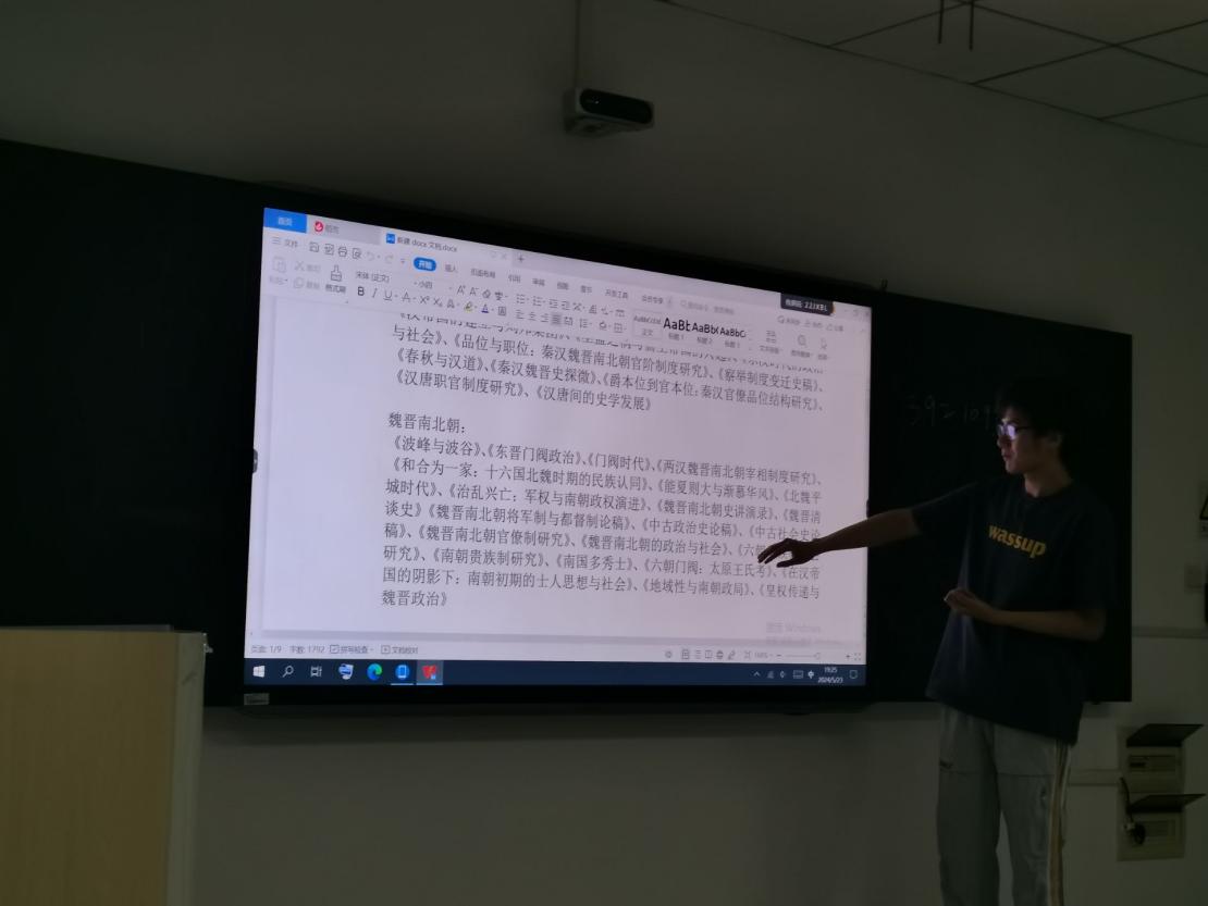 交流会在晚上7点于人文楼21A305开始,主持人分别是2201班和2202班班主任,周鑫老师和姜成山老师。首先由20级王依萍同学向师弟、师妹们介绍了她是如何备考。王依萍同学结合自己成功考取陕西师范大学历史学专业硕士研究生的经验,从确定目标、学习计划的制定、书籍资料的收集、知识点的整理、重难点的突破、各学科复习时间的分配、复试需要注意事项等方面将自己在整个备考期间的全部准备过程毫无保留的和22级的师弟、师妹们进行了无死角的回顾与汇报。这种全程“干货”的讲解,使22级学生第一次对研究生考试的备考有了清醒的认识,对整个学习的过程以及系统性有了概念,因而收获了大家一致的掌声。