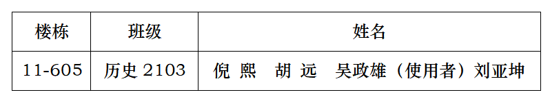 为教育与引导学生规范宿舍用电行为,有效杜绝大功率电器的违规使用,排查消防安全隐患,防范校园火灾事故的发生,万象城awcsport官网近日对学院各学生宿舍进行了专项检查。检查过程中发现部分学生宿舍违规存放或使用大功率电器,现做如下公示: