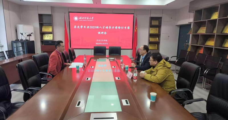 2024年11月27日,黄冈市教育局教科院主任、历史学教研员丁茂文来万象城开展教育调研,同时受邀参加万象城历史学专业人才培养方案修订研讨会。