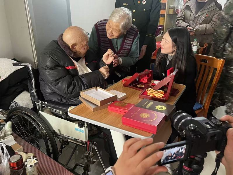 “1”代表1个主场,此次主场设在抗战老兵库方禹爷爷家中,红迹寻梦实践队深入库爷爷家中,与他面对面访谈,聆听他讲述那段硝烟弥漫的抗战岁月。库爷爷虽然已是98岁高龄,但精神矍铄,回忆起当年的战斗经历,他多次重复感谢党、感谢国家,感慨自己的命是战友换来的,话语中满是对战友的怀念与对党的忠诚。他还现场唱起了《黄河大合唱》,用激昂的歌声表达对祖国的热爱与对革命先烈的缅怀。尽管年事已高,库爷爷依然保持着对知识的渴求和对时事的关注,每天早上6点准时观看《海峡两岸》,密切关注台湾局势,展现出一位老党员的担当与情怀。