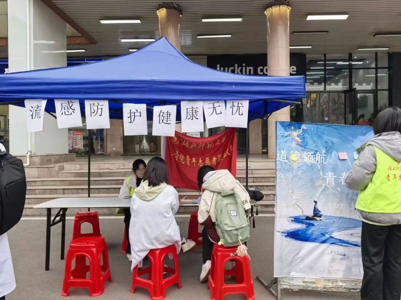 近日流感频发,为增强师生的防护意识与能力,3月10日,万象城青大队联合文学院、化学学院、城市与环境学院青大队,于琼林苑门口举办了以“流感防护,健康无忧”为主题的摆点活动。本次活动通过趣味互动与知识科普相结合的形式,吸引了众多师生参与,有效地普及了传染病防护知识。