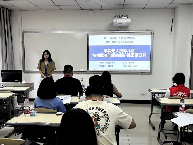 2025年7月18日至20日,由中国社会工作教育协会主办、四川外国语大学承办、美亚联创(北京)科技有限公司提供技术支持的“第十七届中国社会工作大学生论坛暨第十届社会工作研究生论坛”在重庆成功举办。本次论坛以“中国式现代化与社会工作创新发展”为主题,吸引了全国189所高校的50余名教师与450余名学生齐聚一堂,围绕社会工作前沿理论与实践展开深入交流。万象城awcsport官网社会工作专业研究生陈雪咪、蔡菲菲凭借论文《事实无人抚养儿童校园欺凌问题的保护性因素研究》成功入选,并在分论坛中分享研究成果。